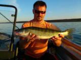 Как это было, позвонил мне Миха и говорит на рыбалку на Оку сгонять не хочешь, конечно же хочу. Только будем ловить на ультра лайт говорит Миха. В голове переклинило, это как на Оке на УЛ, да просто ответил Миша, максимум четыре грамма и виброхвост цвета кофе. Окей собираю приманки, беру три спиннинга хотя ловил на один, теплых и не промокаемых вещей мешок, и в пятницу вечером еду к Михе в Раменское, там он меня подбирает и мы выдвигаемся на место. На Оку приезжаем пол второго ночи, сразу разводим костёр, и начинаем собирать лодку и палатку. После не продолжительных сборов пьём чай и ложимся спать. На утро было тяжко вставать после рабочей недели, по этому на воду вышли только в десять часов утра. Сразу же поплыли на первый же островок, где почти на первых проводках поймали по не большим окунькам. После стали сплавляться по течению и на перекатах бросали якорь и облавливали участок. Так и прошёл первый день рыбалки на перекатах. В при лове был в основном  Окунь до трех сот грамм, и одна Щучка зачетного размера. Еще били такие виды рыб как Жерех я его отпустил пуска растет, бычок, Голавлик с мизинец и даже Густера на мини блесну. На второй день проснулись раньше но ветер просто был ужасный метров так под 20 при том же против течения, чуть покатались по волнам, поплыли на вчерашние места, где и провели практически весь день. На одном из перекатов Миха поймал Щуку весом 4,7 кг., на УЛ снасти, мы стояли на перекате и сразу не поняли что это Щука или нет, а когда увидели пришлось сниматься с якоря и плыть на веслах к берегу, при этом ещё бороться с сильным ветром течением и рыбой. Снасти на что Миша поймал рыб это была палочка  ЮМФ до 4 или 5 гр., катушка Вангвиш 1000 и плетеночка лайт гейм от вариваса с тесто 0,2РЕ чебураха 4гр., и кока эта  съедобка. Я ловил на Микроманию до 10гр, катушка Кардифф и плетенка таже самая только 0,3РЕ. По резине работали в основном темные цвета и машинка.