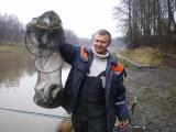 Оставил я тестя уговаривать форель, а сам двинулся составить компанию Антону, который вдоль бережка полоскал блесенки с целью изловить бобковского окунька и набить руку перед предстоящими областными соревами по зимней блесне, на которые и я тоже зарегелся. Сели в самый дальний угол основной акватории на мель у камышиков. Антон одного полосатика достал, вскоре и я обрыбился окуньком на баланс Куусама Тассапаино 50. В очередной лунке на паузе кивок регистрирует подбой, подсекаю и в следующую секунду понимаю, что вес рыбки подо льдом явно не окуневый, а лесочка то 0,16..... сдаю рыбе метров пять лески (благо удильник не с мотовилом а с катушкой) и поехали играть в "туда - сюда", явно понимаю что рыба не маленькая но ни на форель ни на щуку по ощущениям не похоже. С четвертой попытки наконец завожу это нечто в лунку, вот он - мой яркий балансирчик показался......... блин да он в мясистой карповой губе :ai: !!!!!! Забыв про то что руки в перчатках пытаюсь подхватить карпа за жабру но в следующий момент этот поросенок разевает свою пасть и маленький тройничек баланса выскакивает из губы и пулей летит мимо уха мне за спину, ну а я не успеваю ухватить эту морду и она спокойно уходит восвояси :bk: . Перчатка мокрая, в руках тремор, рыба у себя дома :ag: . Ну ладно, значит не мой. Через пару минут на взмахе ощущаю зацеп......, блин откуда он тут взялся, чистая лунка то была, но зацеп оживает и начинает тянуть не по детски, опять сдаю леску, опять "туда - сюда", подвожу к лунке, но вижу что этот карпик явно подбагрился, слава богу сход. Следующим номером этой цирковой программы достаю на хвостовом крючке балансира карповую чешуину размером с 50-ти коп. монету. Вобщем азарт азартом, но дальше судьбу своего любимого поискового окуневого баланса испытывать не стал, да и не спортивно как то все это, этакий подледный хынч получается :ag: . Ушел обратно к Михалычу. У него фора продолжала упорно бастовать. Погонял я вместе с ним железо, но тоже безрезультатно. Перед уходом опять сбегал в дальний угол основного, там отметился одной злой поклевкой "в руку", но не реализовал.